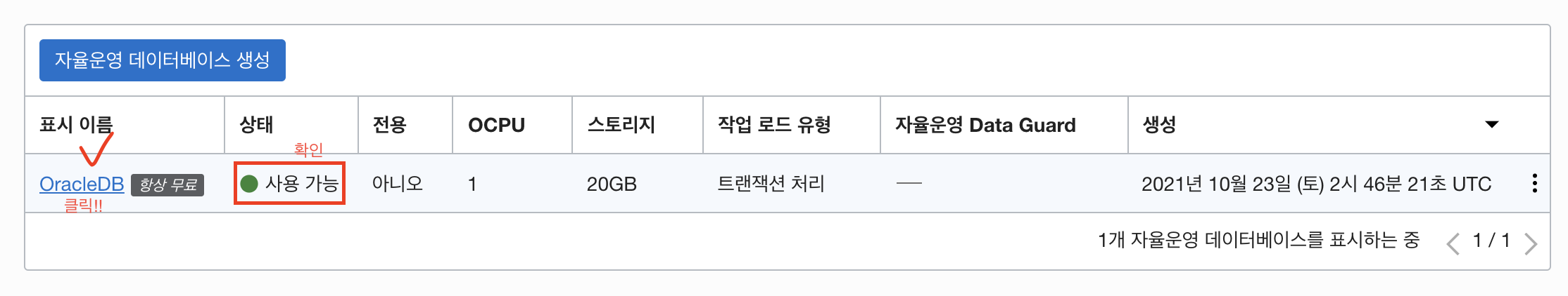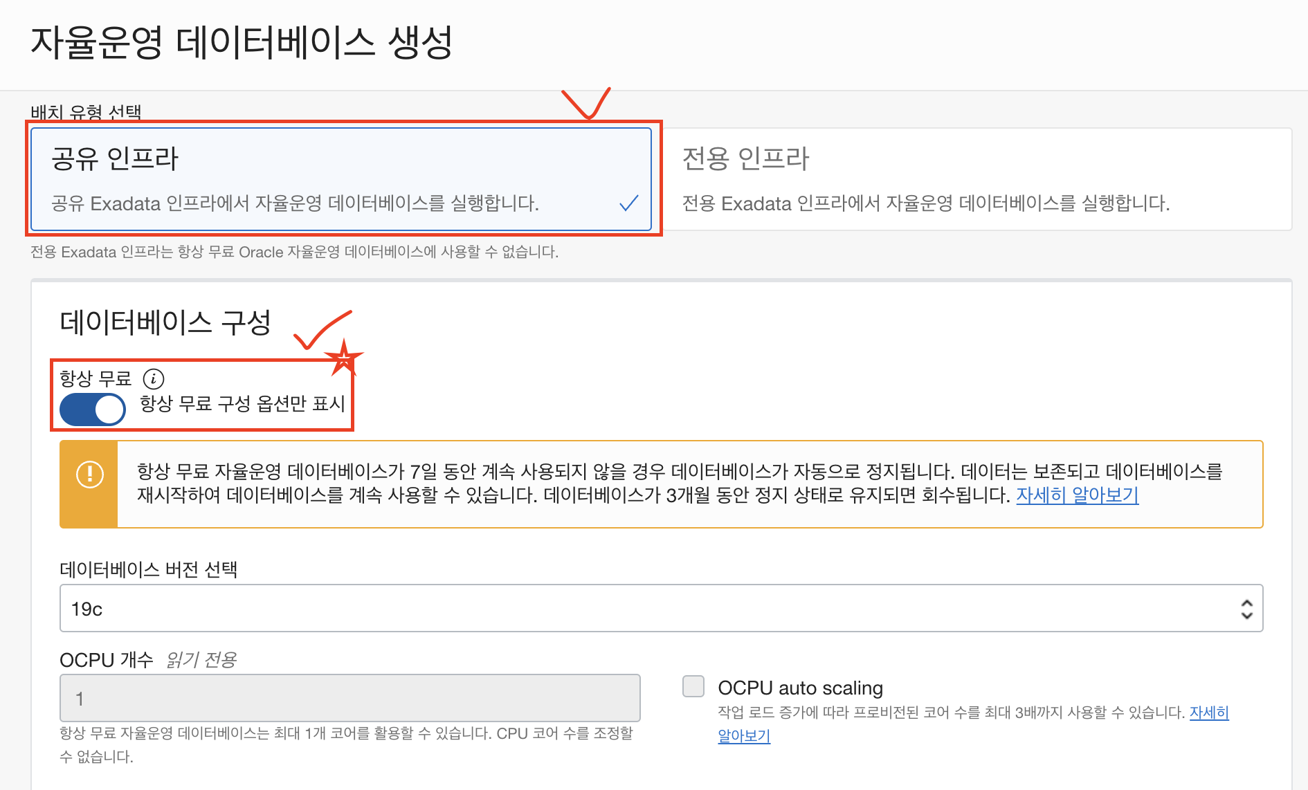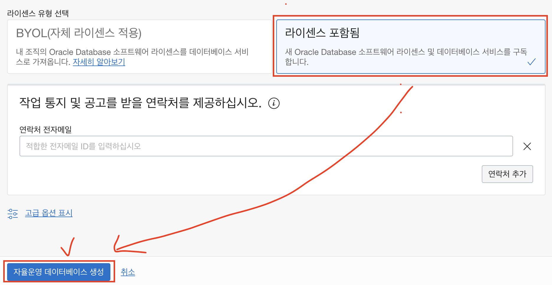 이제 다왔다… 라이센스 유형을 선택후 자율운영 데이터 베이스를 만들면 끝이다!!